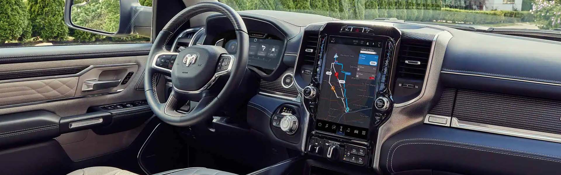 The 2024 RAM 1500's interior is a sanctuary of full-blown luxury. The high-end trims push the boundaries of indulgence through plush leather upholstery, intricate wood detailing, and a large 12-inch Uconnect® touchscreen. With an impressive array of storage possibilities and ample spacious seating comfortably accommodating every passenger onboard, practicality takes no backseat.