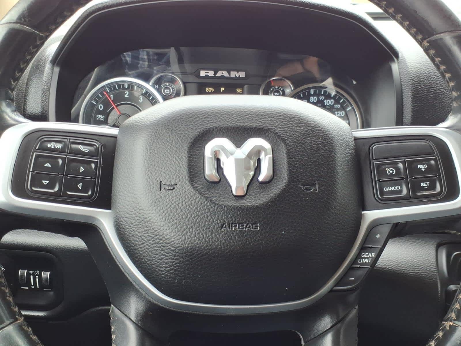 TOWING TECHNOLOGY GROUP CTR Stop Lamp w/Cargo View Camera, Mirror-Mounted Aux Reverse Lamps, Surround View Camera System, Premium Power Black Tow Mirrors w/Convex Spotter, Trailer Reverse Guidance, Power Adjustable Convex Aux Mirrors, LEVEL 1 EQUIPMENT GROUP Radio: Uconnect 4 w/8.4 Display, Google Android Auto®, SiriusXM Radio Service, SiriusXM Satellite Radio, Integrated Center Stack Radio, For More Info, Call 800-643-2112, 8.4 Touchscreen Display, Apple CarPlay®, Locking Lower Glove Box, Rear View Auto Dim Mirror, Power Adjustable Pedals, Leather Wrapped Steering Wheel, Rear Dome w/On/Off Switch Lamp, Front Fog Lamps, Power Adjust/Fold & Heated Black Tow Mirrors, Steering Wheel Mounted Audio Controls, Dual Glove Boxes, Glove Box Lamp, Footwell Courtesy Lamp, Universal Garage Door Opener, Cluster 3.5 TFT Color Display, Power Folding Mirrors, Foam Bottle Insert (Door Trim Panel), Wheels: 18 x 8.0 Polished Aluminum, 2nd Row In Floor Storage Bins, Sun Visors w/Illuminated Vanity Mirrors, OFF ROAD PACKAGE Front Performance Tuned Shock Absorbers, Tow Hooks, Off Road Decal, Transfer Case Skid Plate Shield, Hill Descent Control, Rear Performance Tuned Shock Absorbers, HEATED SEATS & WHEEL GROUP Heated Steering Wheel, Steering Wheel Mounted Audio Controls, Heated Front Seats, Leather Wrapped Steering Wheel, ANTI-SPIN DIFFERENTIAL REAR AXLE, DIESEL GRAY/BLACK, PREMIUM CLOTH BUCKET SEATS Bucket Seats, Manual Adjust 4-Way Front Passenger Seat, Power Adjust 8-Way Driver Seat, Folding Flat Load Floor Storage, Rear 60/40 Folding Seat, Front Seat Back Map Pockets, Power 2-Way Driver Lumbar Adjust, Full Length Upgraded Floor Console, TRANSMISSION: 8-SPEED AUTO (8HP75-LCV) (STD), ENGINE: 6.4L HEAVY DUTY V8 HEMI W/MDS (STD), BLIND SPOT & CROSS PATH DETECTION Power Folding Mirrors, Power Adjust/Fold & Heated Black Tow Mirrors, LED Tail Lamps. AutoCheck One Owner